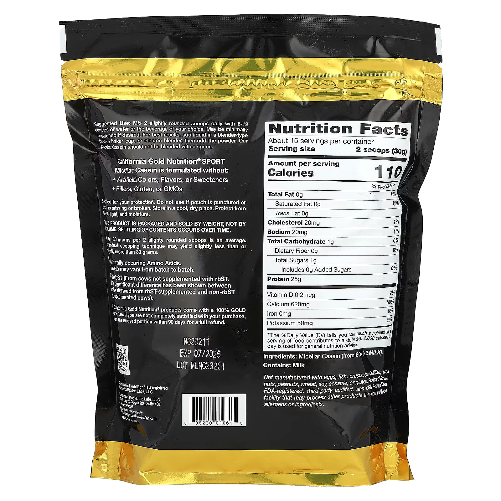 California Gold Nutrition, Sport, Micellar Casein, Unflavored, Slow Absorption, 16 oz (454 g)