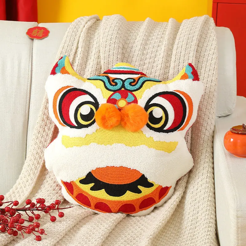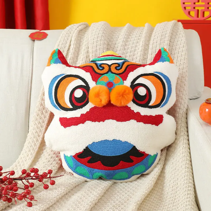 Chinese National Tide 3D Awakening Lion Head Pillow