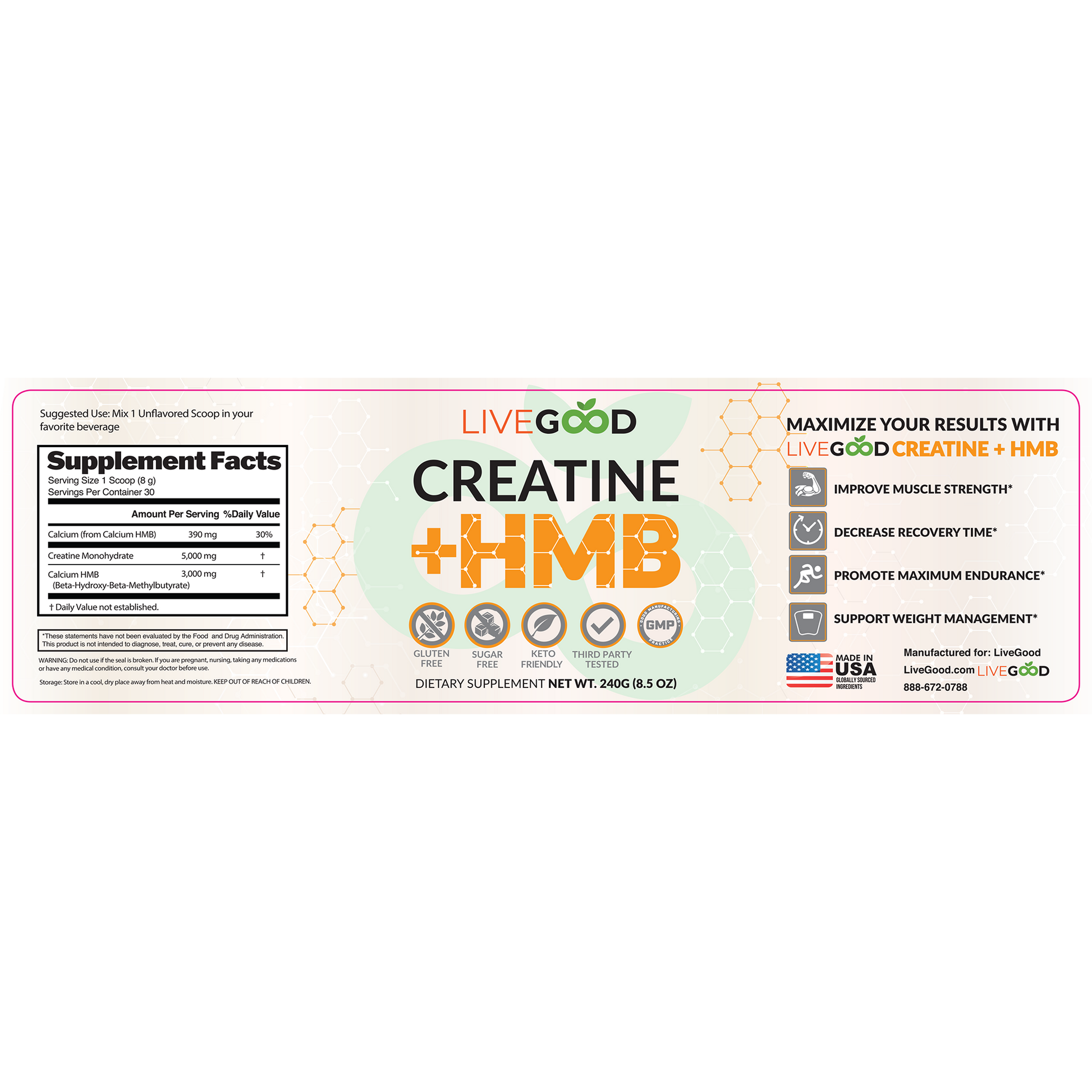 LiveGood’s Creatine + HMB provides the extra fuel for your muscles to do more work and slow down age related muscle loss and cognitive decline. It helps improve muscle mass, recovery, endurance and stamina, sleep, hydration and even brain function.