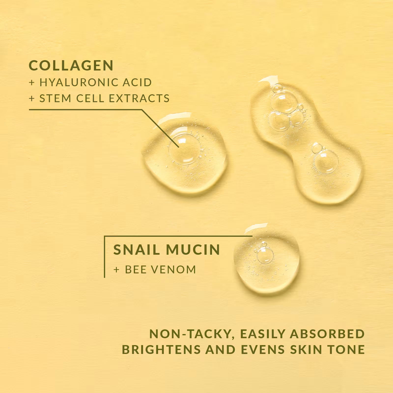 Snail Mucin - This ancient remedy locks in moisture and boosts collagen production to help diminish fine lines and wrinkles for softer skin and a more radiant, youthful glow.