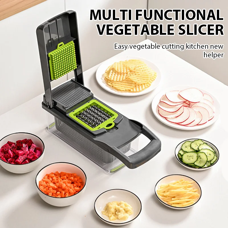 16 in 1 Multifunctional Vegetable Slicer Cutter Shredders Slicer With Basket Fruit Potato Chopper Carrot Grater Kitchen Accessor