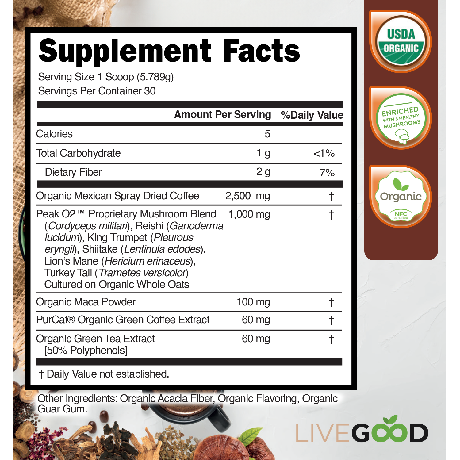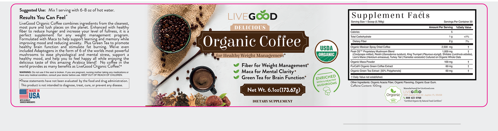 Not only does LiveGood Organic coffee combine the highest quality ingredients from the cleanest, most pure and lush places on the planet, it is the FIRST and ONLY coffee enhanced with healthy fiber to reduce hunger, formulated with maca to help support learning and memory while improving mood, plus green tea to promote healthy brain function and stimulate fat burning, AND adaptogens in the form of 6 of the world’s most powerful mushrooms to ease stress, support a healthy body, and help you feel great! No coffee on the planet provides as many benefits as LiveGood Healthy Organic Weight Management Coffee with Mushrooms 😊